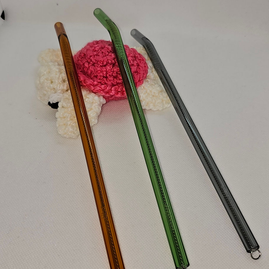 GLASS STRAW 8" BENT WITH CLEANING STRAW